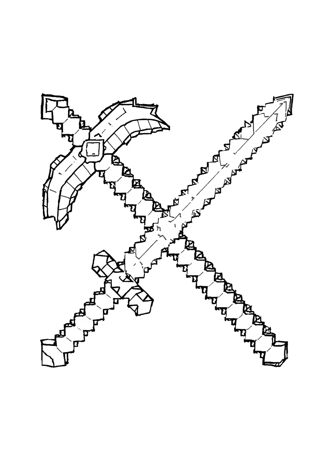 Minecraft picareta e espada cruzadas